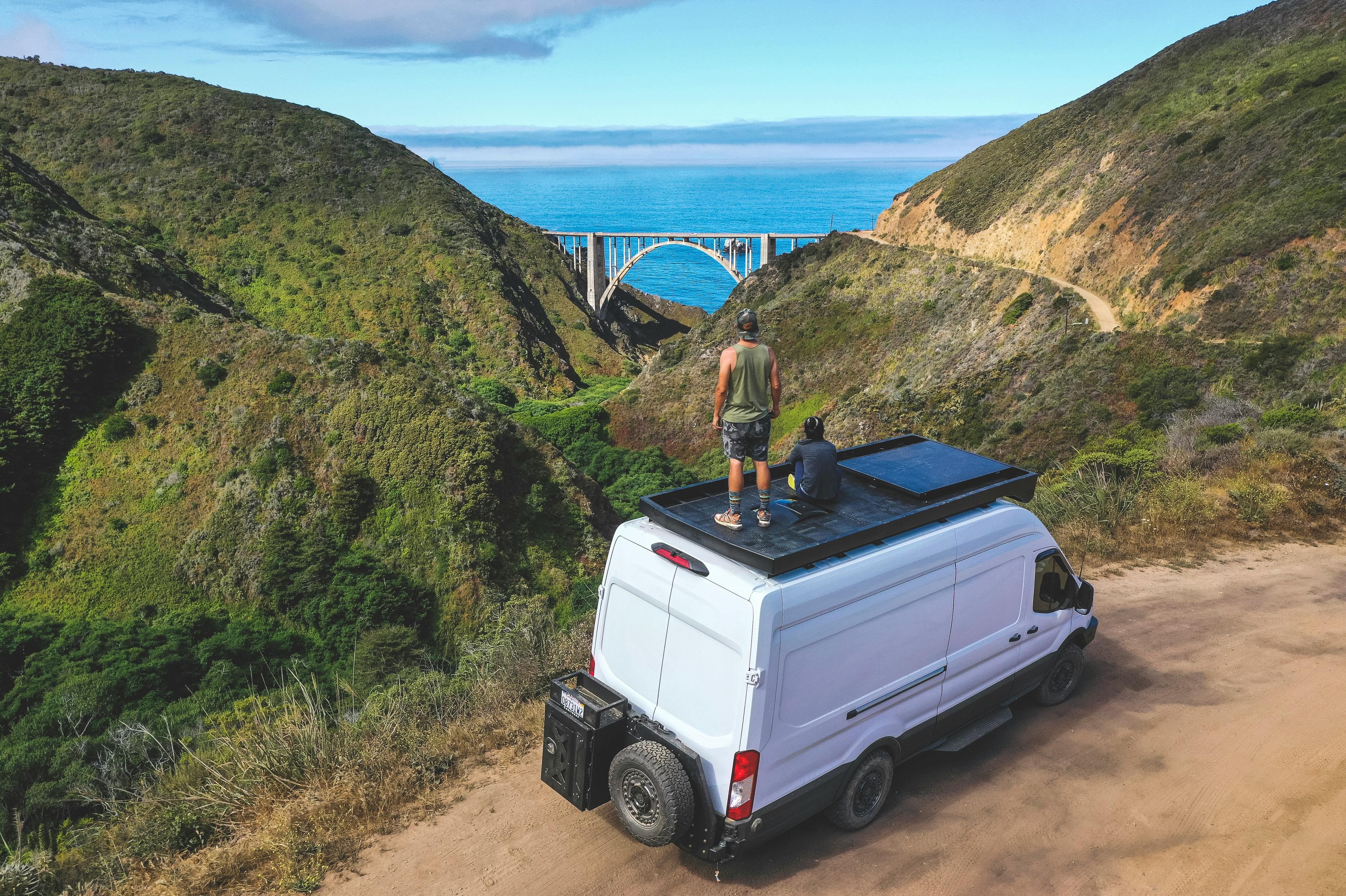 Solpaneler laddar ett 12V-batteri, och sedan driver batteriet belysning, kylskåp, laddare och annan utrustning – ofta via en solcellsregulator och ibland en inverter för att kunna använda 230V-apparater.